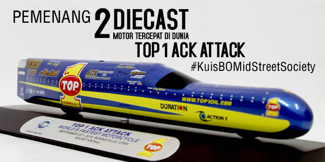 Selamat kepada 2 orang beruntung yang berhak mendapatkan masing-masing 1 diecast motor tercepat di dunia TOP 1 ACK ATTACK: