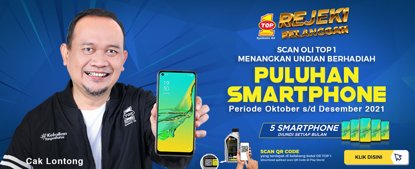 Dalam memberikan kepuasan pelanggan setia, TOP 1 Indonesia menghadirkan Program Rejeki Pelanggan yang berguna untuk mengapresiasi para pengguna setia oli TOP 1. Akan dibagikan hadiah berupa SMARTPHONE EKSKLUSIF setiap bulannya dengan cara yang mudah!