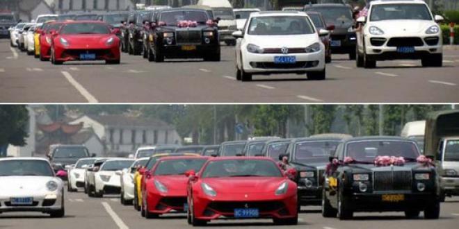 Aksi hebat ini dilakukan seorang pasangan yang berdomisili di daerah Wenzhou di provinsi Zheijian, Cina. Semua teman-teman kedua mempelai diundang untuk mengikuti iring-irigan pengantin hingga ke pelaminan.