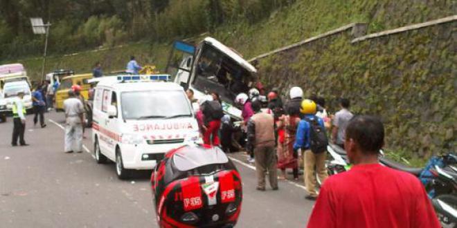Otosia.com - Bus pariwisata Mustika Mega Utama menabrak tebing di Kampung Pengkolan, Ciloto, Cianjur, Jawa Barat hingga mengakibatkan 15 orang tewas. Polisi menduga kecelakaan tersebut akibat rem blong. "Bus dari arah Bogor menuju Cianjur menabrak tebing diduga rem tidak berfungsi yang dikemudikan oleh Pandi," kata Kabag Penum, Kombes Pol Agus Rianto dalam pesan singkat yang diterima wartawan di Jakarta, Rabu (27/2). Akibat kecelakaan itu jumlah korban terus bertambah. Terakhir tercatat sudah ada 15 orang yang tewas. "Korban meninggal dunia menjadi 15 di RS Cimacan, Pacet," lanjutnya lagi. Berikut adalah data para korban tersebut : 1. Hadi asal Bogor, umur 51 tahun, pekerjaan swasta, alamat Kampung Cikemang, Desa kecamatan Sukajaya kabupaten Bogor. 2. Mumun asal Bogor, umur 45 tahun, pekerjaan buruh. 3. Herlan asal Bogor, umur 50 tahun, pekerjaan swasta. 4. Ani asal Bogor, umur 47 tahun, pekerjaan Ibu Rumah Tangga. 5. Yusup Subrata, asal Bogor, umur 39 tahun, pekerjaan swasta. 6. Dedeh binti Ukar, asal Bogor, umur 45 tahun, pekerjaan Ibu Rumah Tangga. 7. Panca, umur 8 tahun, pekerjaan pelajar. 8. Ema, umur 13 tahun, pekerjaan pelajar. 9. Siti Badriatun, umur 25 tahun, pekerjaan Ibu Rumah Tangga. 10. Dedeh, umur 30 tahun, pekerjaan Ibu Rumah Tangga. 11. Nadi, umur 25 tahun, pekerjaan swasta. 12. Eram, umur 35 tahun, pekerjaan ibu rumah tangga. 13. Dede opik, umur 38 tahun. Sisanya dua orang belum teridentifikasi. (mdk/mus/ian)
