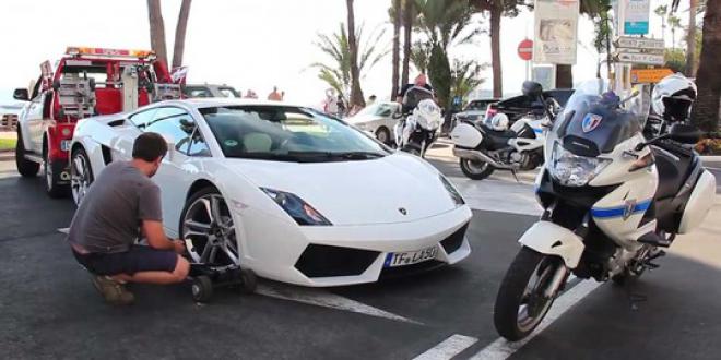 Kejadian ini baru saja terjadi di Perancis, tepatnya di kota Cannes pada Selasa (11/03). Jeremi Claekson dan Richard Hammond, penumpang dari Gallardo ini tidak bisa berkutik kala petugas menarik Surat Ijin Mengemudi (SIM) mereka. Namun, sebelum Polisi meminta SIM itu, prosesi evakuasi sang Lambo ini rupanya tidak semudah seperti menderek mobil-mobil lainnya.
