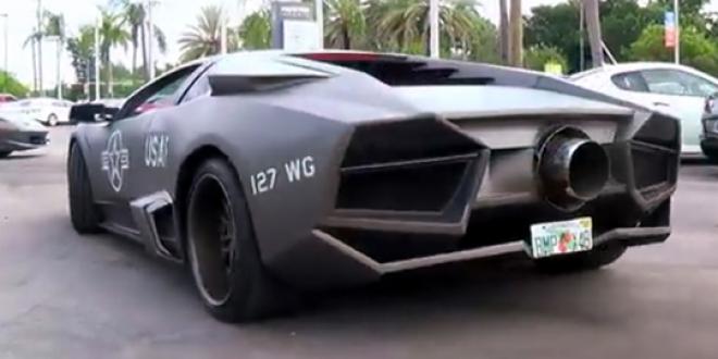 Agar semakin menyempurnakan efek layaknya mobil perang dengan karakter seperti pesawat jet, pemiliknya pun keluar mobil dengan kostum layaknya pilot pesawat.