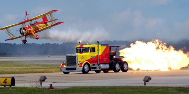 Truk monster ini dikenal dengan nama Shockwave. Penampakan selimut api yang menyembur dari corong api ditambah knalpot super panas dengan jilatan si jago merah menjadi identitas aslinya. Tak ubahnya sebuah monster, Shockwave seolah menginspirasikan truk monster dengan ekor apinya yang siap menerjang apa pun yang menghalanginya.