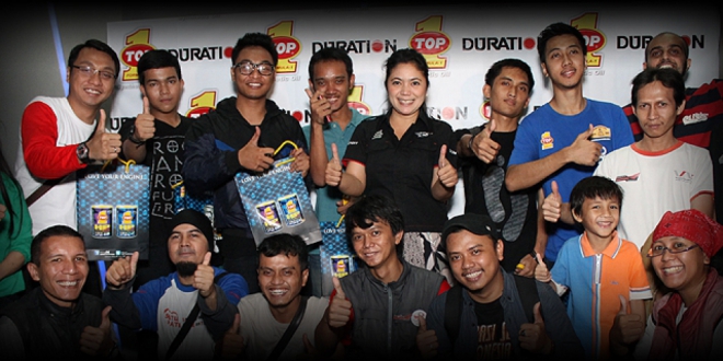 “Acara Nonton bareng ini kami selenggarakan untuk mengisi aktifitas diluar kegiatan otomotif sekaligus memperkenalkan produk spare parts DURATION ke Komunitas Roda 4 dan Roda 2. Acara ini menjadi ajang silaturahmi para komunitas Roda 2 dan Roda 4 sekaligus gathering sebelum bulan suci tiba,” ujar Akmeilani, Assistant Brand Manager TOP 1 Indonesia tentang acara “Nonton Bareng” ini. “Kami berharap perkenalan produk ini dapat menambah pengetahuan teman – teman komunitas dan menjadi referensi yang tepat untuk diaplikasikan di kendaraan kesayangan mereka.” Tutupnya setelah mempersilahkan rekan komunitas menikmati suguhan film “The Amazing Spiderman”.