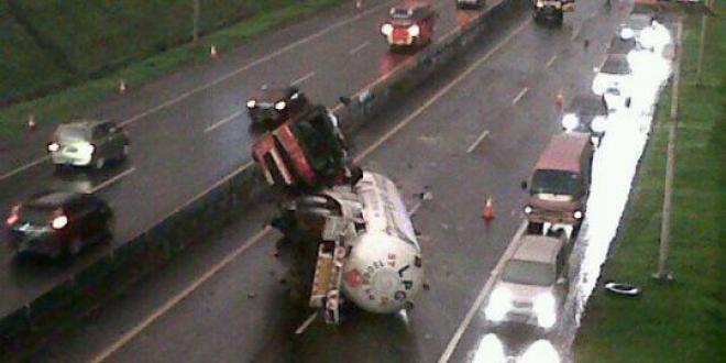 Truk LPG yang terguling di Cipularang berhasil dievakuasi