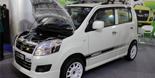 Booth Suzuki di Pameran Otomotif Surabaya (POS) 2013 penuh dengan pengunjung yang penasaran dengan si mobil murah Suzuki Wagon R. Ia dilengkapi dengan mesin 3 silinder berkapasitas 1.000 cc DOHC 12-katup dengan tenaga maksimal 68 hp.