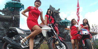 Empat wanita cantik dan seksi mengawal mobil-mobil sport pemenang ajang balap Forza GT3 yang dihelat di Sirkuit Internasional Sentul, Bogor pada Minggu (16/12).